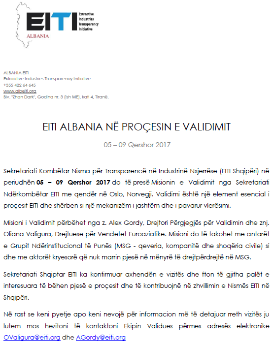 31 Maj EITI Albania në proçesin e validimit Posted at 12:05h in Njoftime by admin-albeiti Share Print page